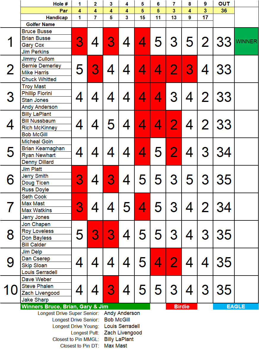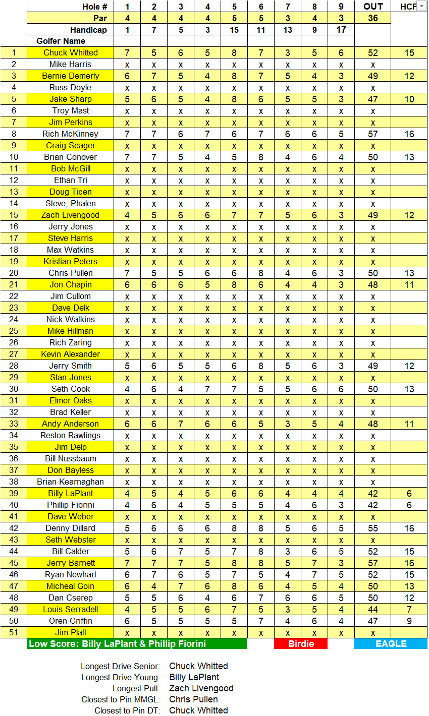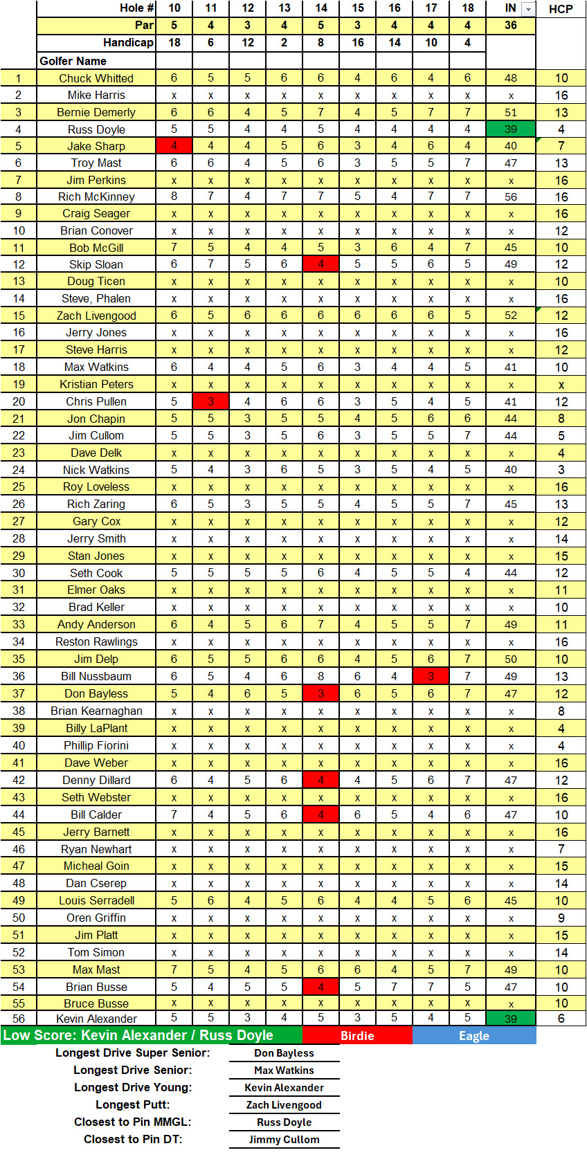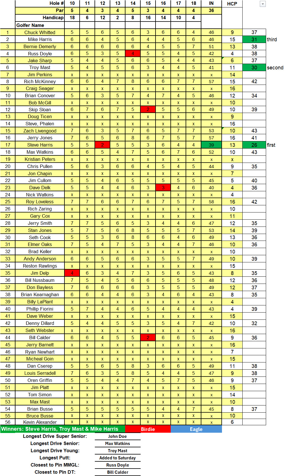 ** If numbers work out * may need clarification if over 80 playing from Green Tees |