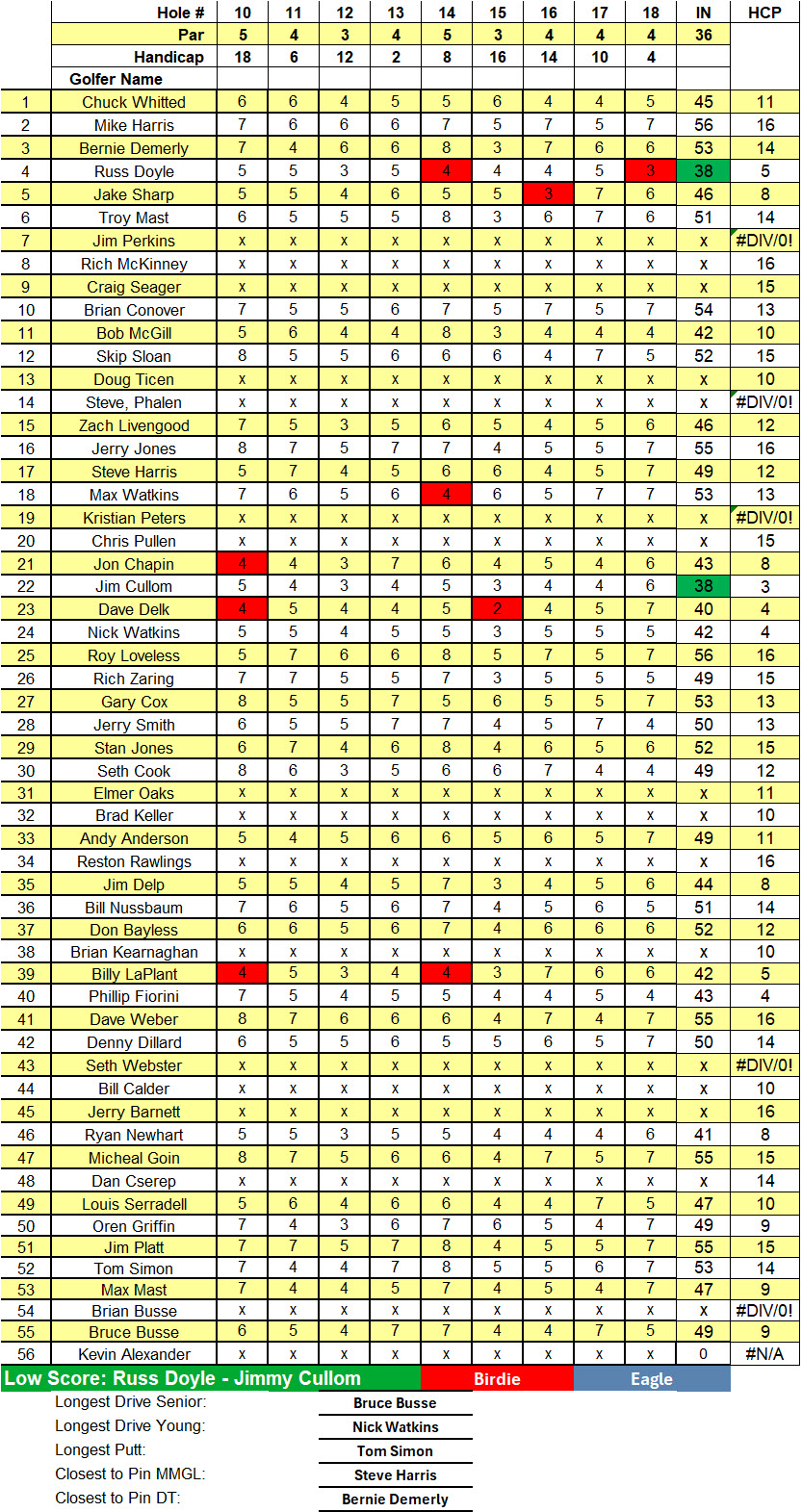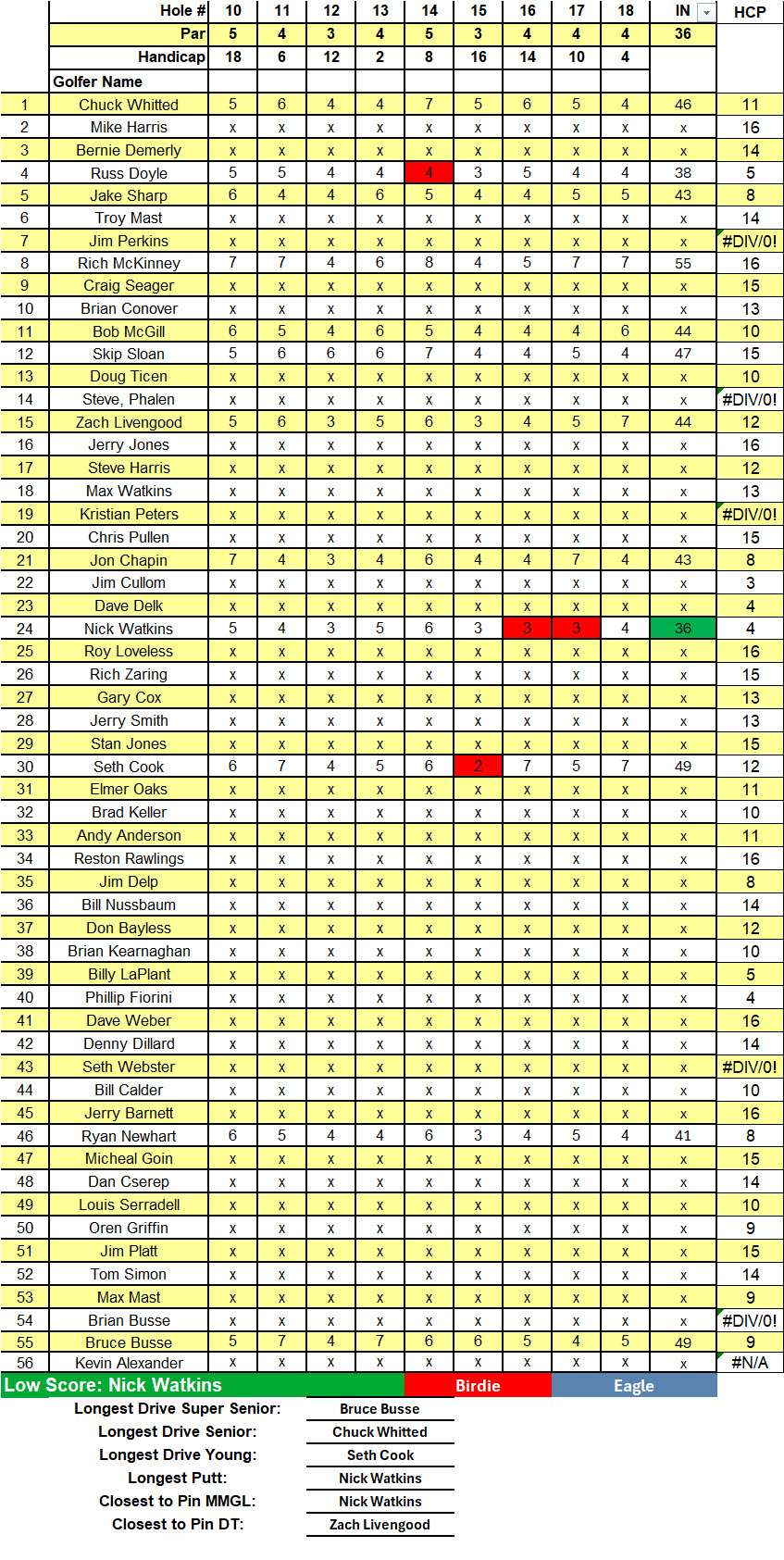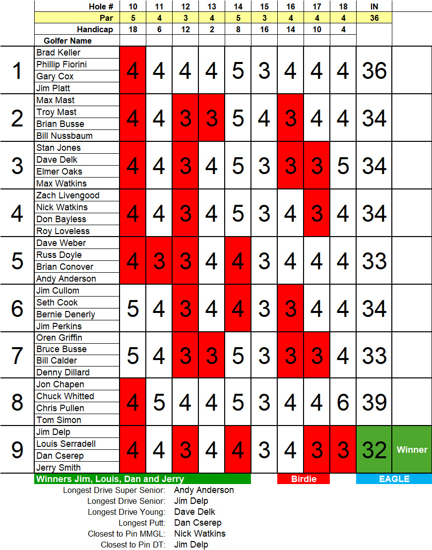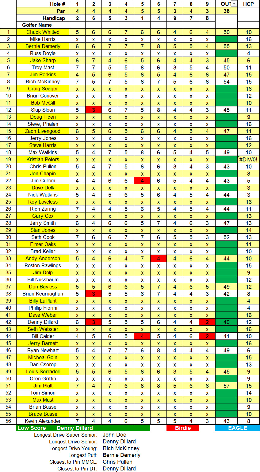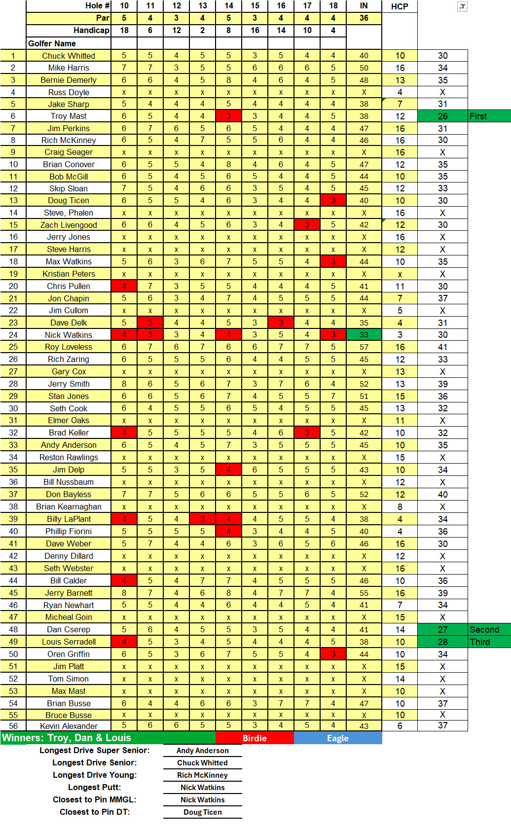 ** If numbers work out * may need clarification if over 80 playing from Green Tees |