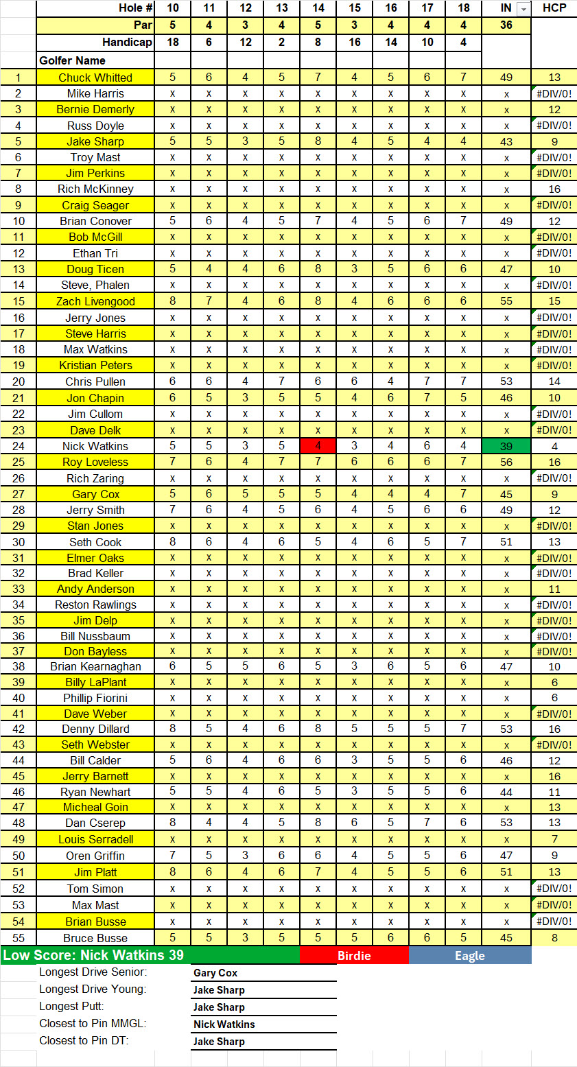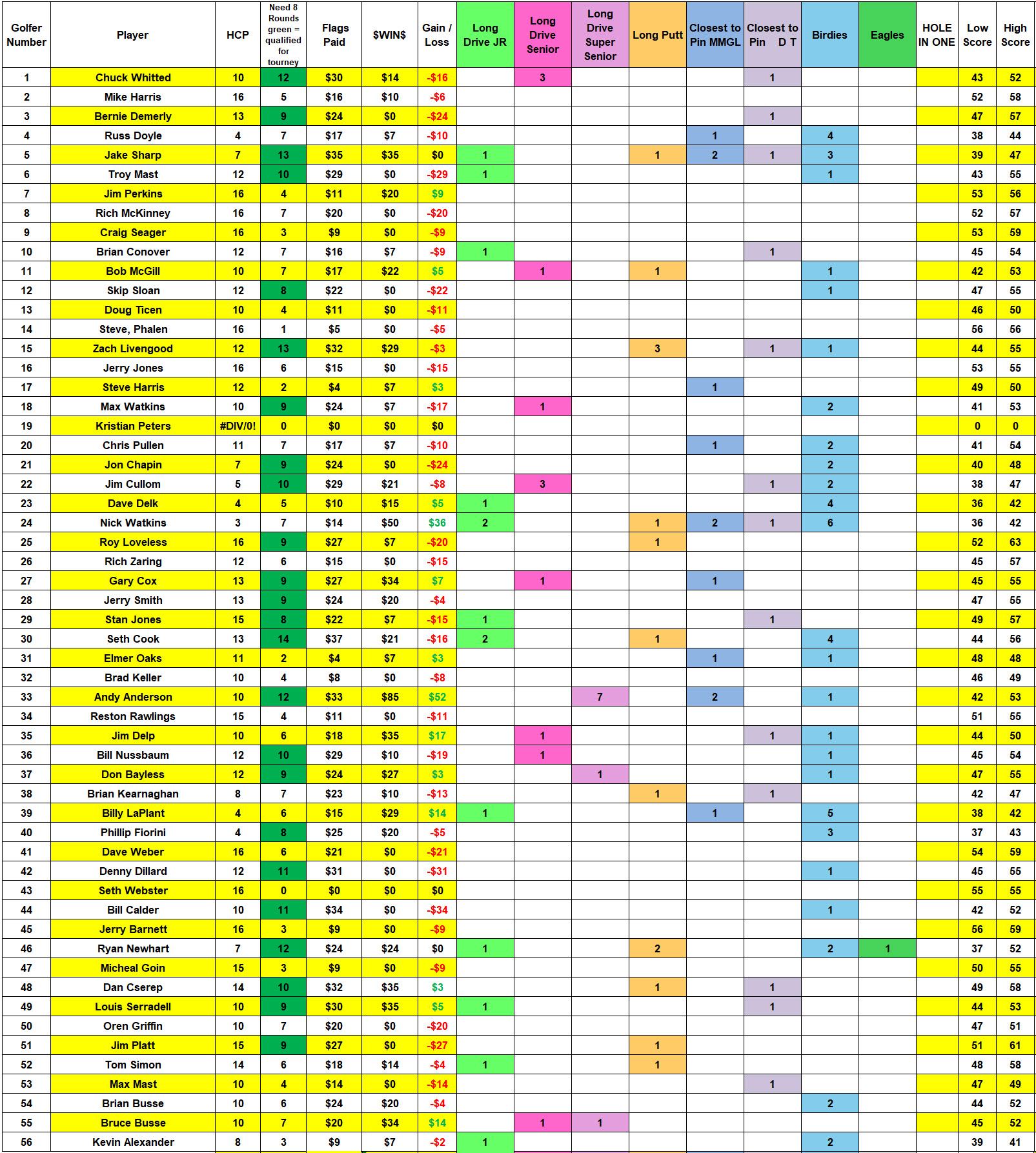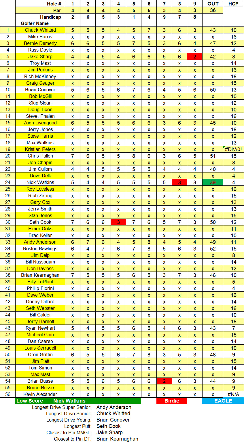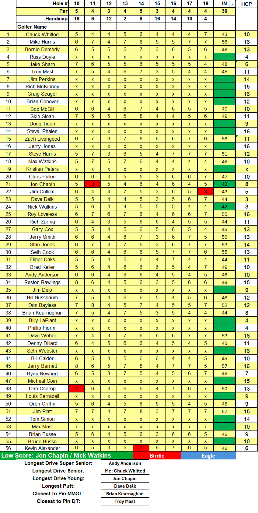 ** If numbers work out * may need clarification if over 80 playing from Green Tees |