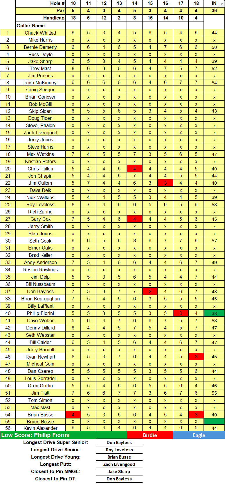 | 11 | June 17 | Tuesday | 5:30 | Front | 3-Club |