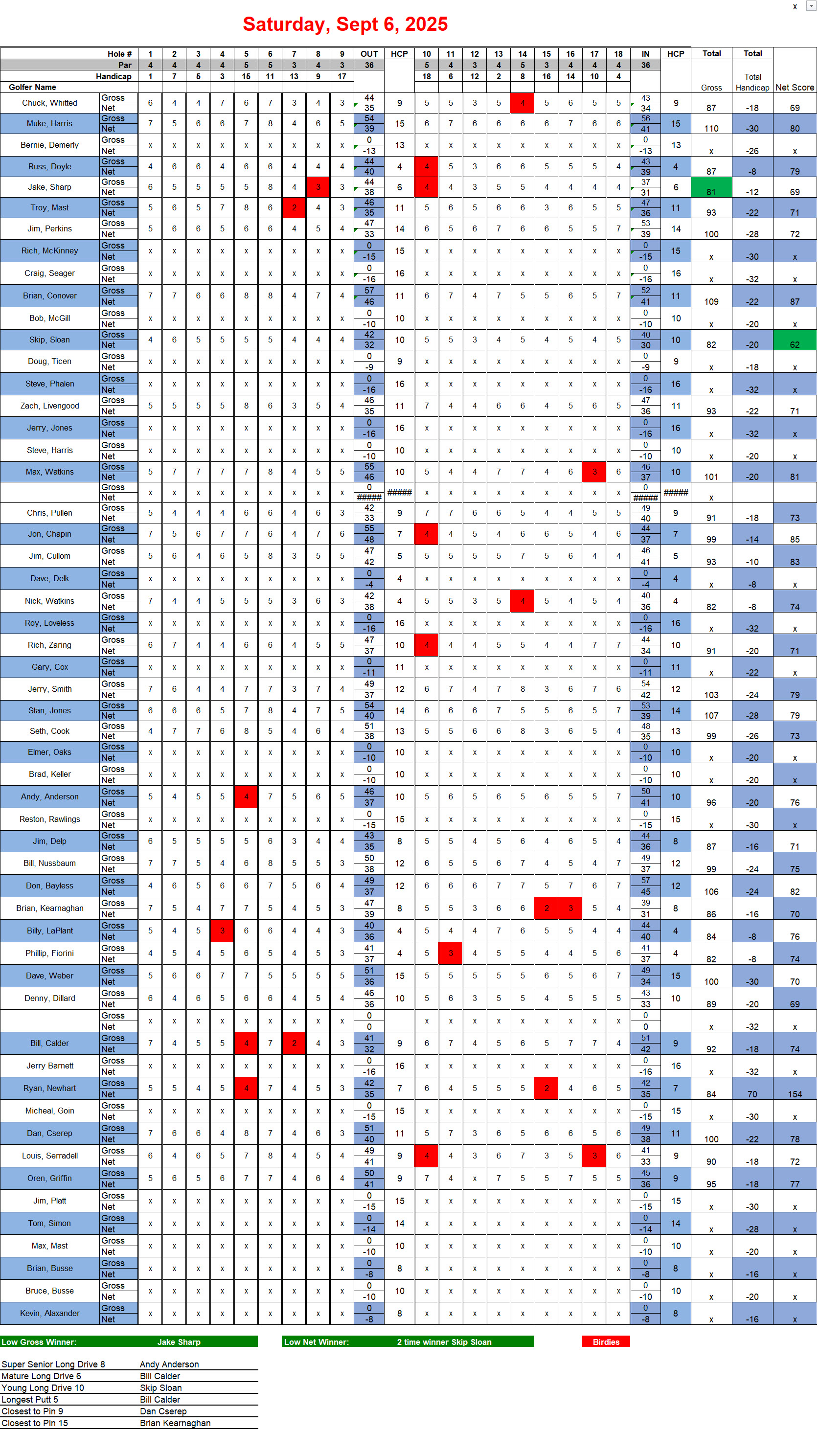 Season End Tournament | September 06 | Saturday | 8:00 am | Both |